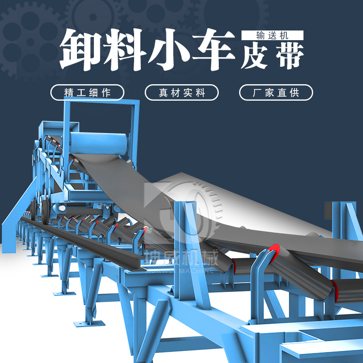 皮帶輸送機卸料小車在部件組成上和皮帶輸送機沒有太大差異。都是包含滾筒,輸送帶以及托輥等部分組成。